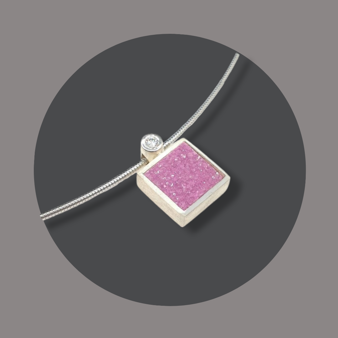 Anhänger aus 925/- Silber mit glitzerndem naturbelassenem Kobaltcalcit und Brillant.