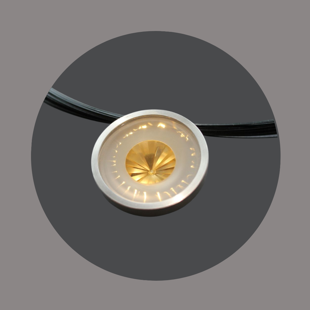Durch das Zusammenspiel von den aufwändig geschliffenen und raffiniert kombinierten Edelsteinen ,entsteht ein faszinierendes Lichtspiel an der Oberfläche, sobald der Anhänger bewegt wird.