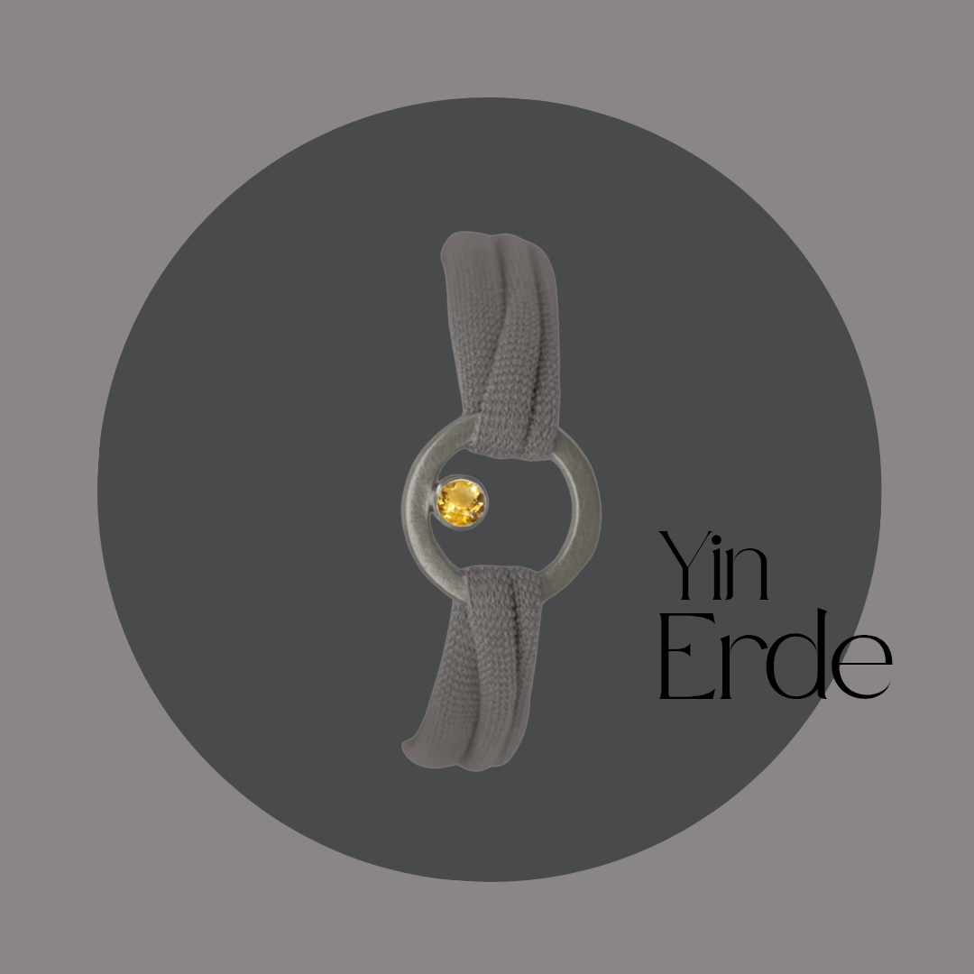 Das Armband besteht aus einem Silberelement mit Citrin und einem elastischen Band.