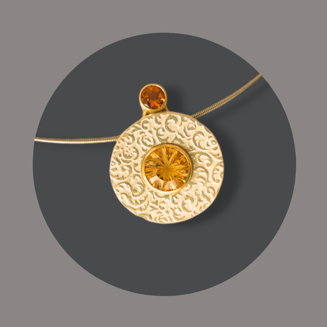 Dafür wird die Scheibe aus Silber auf den Grundring gesteckt und durch den Halsreif (oder Kette) gesichert.