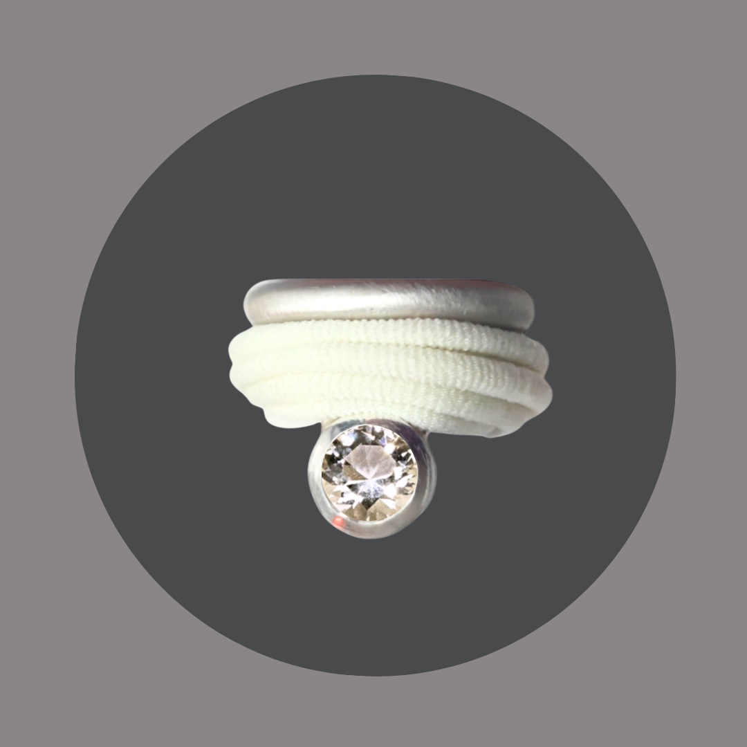 Der Ring wird einfach um den Finger gewickelt und passt sich  dank elastischem Band dem Finger an.